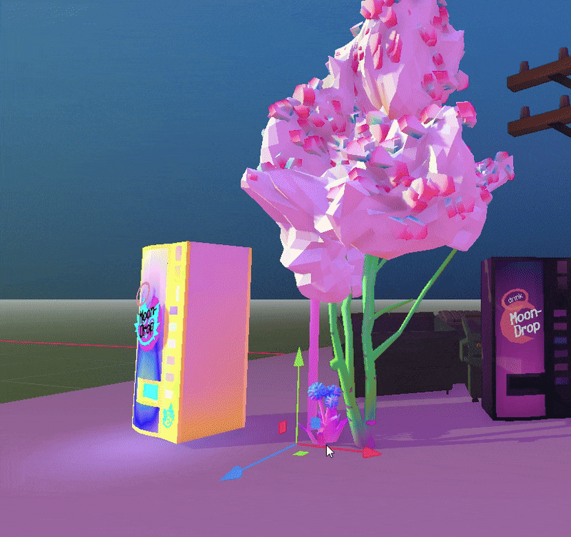 I used VisualShaders’ especially cool VisualShaderNodeColorOp node to do color operations, like inverting + overlaying a blue/purple color to create a pastel “dream world” aesthetic, which we were planning to be part of an alternate dream realm: